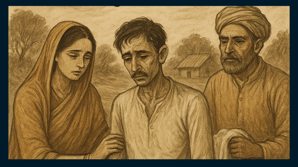 बाप-बेटे रोते हुए गाँव के ज़मींदार के पास गए। वह इन दोनों की सूरत से नफ़रत करते थे। कई बार इन्हें अपने हाथों से पीट चुके थे। चोरी करने के लिए, वादे पर काम पर न आने के लिए। पूछा—“क्या है बे घिसुआ, रोता क्यों है? अब तो तू कहीं दिखलाई भी नहीं देता! मालूम होता है, इस गाँव में रहना नहीं चाहता।”