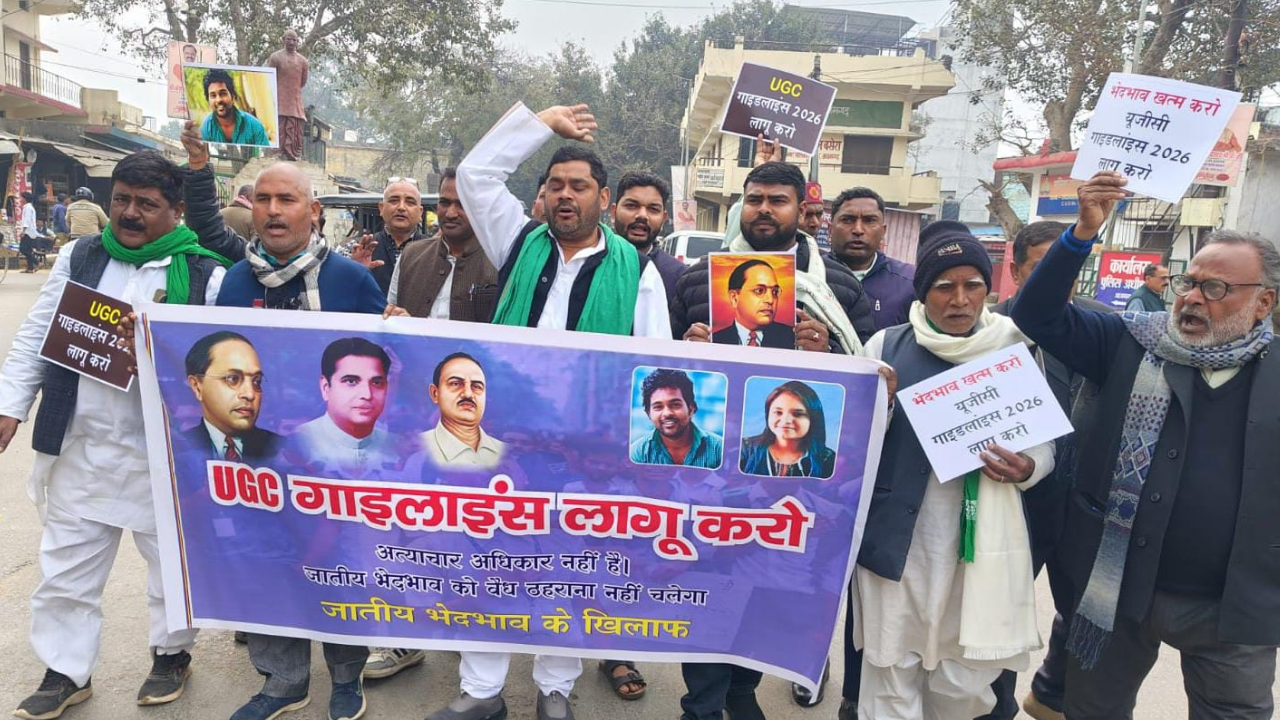 यूजीसी इक्विटी नियमावली लागू करने की मांग को लेकर सामाजिक संगठनों ने जुलूस निकालकर राष्ट्रपति को सम्बोधित ज्ञापन जिलाधिकारी को सौंपा। जगदेव प्रसाद की जयंती के अवसर पर प्रदर्शनकारियों ने यूजीसी गाइडलाइंस लागू करो, जाति जनगणना कराओ, न्याय पालिका में प्रतिनिधित्व की गारंटी करो, रोहित वेमुला अमर रहें, पायल ताड़वी अमर रहें के नारे लगाए।